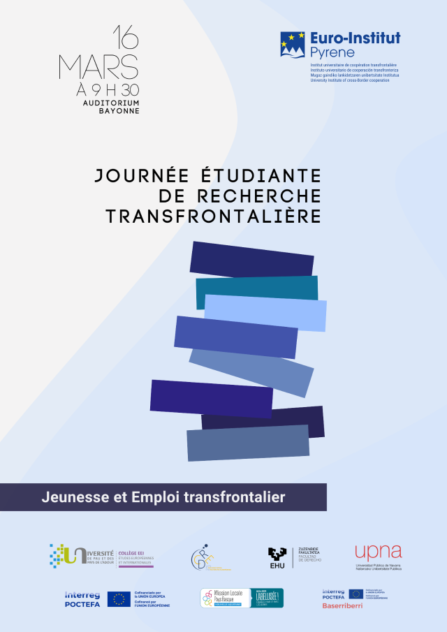 Les étudiants du Master 2 EEI présenteront des interventions sur le thème de "Jeunesse et emploi transfrontalier". Cette journée se déroulera à l'Auditorium du Campus de Bayonne. Lire le programme