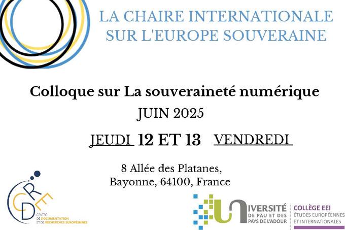 Le numérique est au coeur des diverses thématiques du CDRE. Sur un plan transfrontalier, il se concrétise par la création d’un Groupe de travail transfrontalier en matière d’Intelligence artificielle, le réseau RetrIA, regroupant des enseignants-chercheurs de l’Universités Publique de Pamplona, de l’Université du Pays basque, de l’Université de La Rioja et de l’UPPA (CDRE). Si la première ligne de recherche est centrée sur « L’IA appliquée à la surveillance numérique des personnes dans le cadre transfrontalier de l’Eurorégion », nombreux sont les aspects recensés par l’équipe transfrontalière qui méritent une étude en commun : la technologie associée à l’IA ; les systèmes techniques de surveillance numériques basés sur l’IA (biométrie et reconnaissance faciale et gestuelle) ; la gestion et le contrôle des systèmes et des données collectées ; l’étude de l’utilisation des algorithmes prédictifs concernant les données obtenues par le biais de systèmes de vidéosurveillance ; ou encore la coopération policière et judiciaire sur le territoire transfrontalier. La perspective de ces études laisse présager un investissement important d’une grande partie de l’équipe (M. Mestrot, M. Poelemans, G. Bachoué, S. Peyrou, S. Alma-Delettre, C. Teyssier, Th. Durand, E. Kuznetsova).
